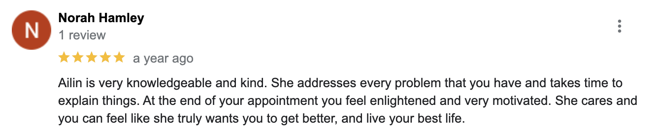 "I’m so grateful to have Ailin as my guide and support on this journey. Every time we talk, I feel empowered in a way I would never feel on my own. She shares so much knowledge and is always attentive, suggesting solutions and pushing me forward while making me feel I’m in charge, and I’m really impressed by that because it was never the case with any of the health practitioners I worked with in the past.